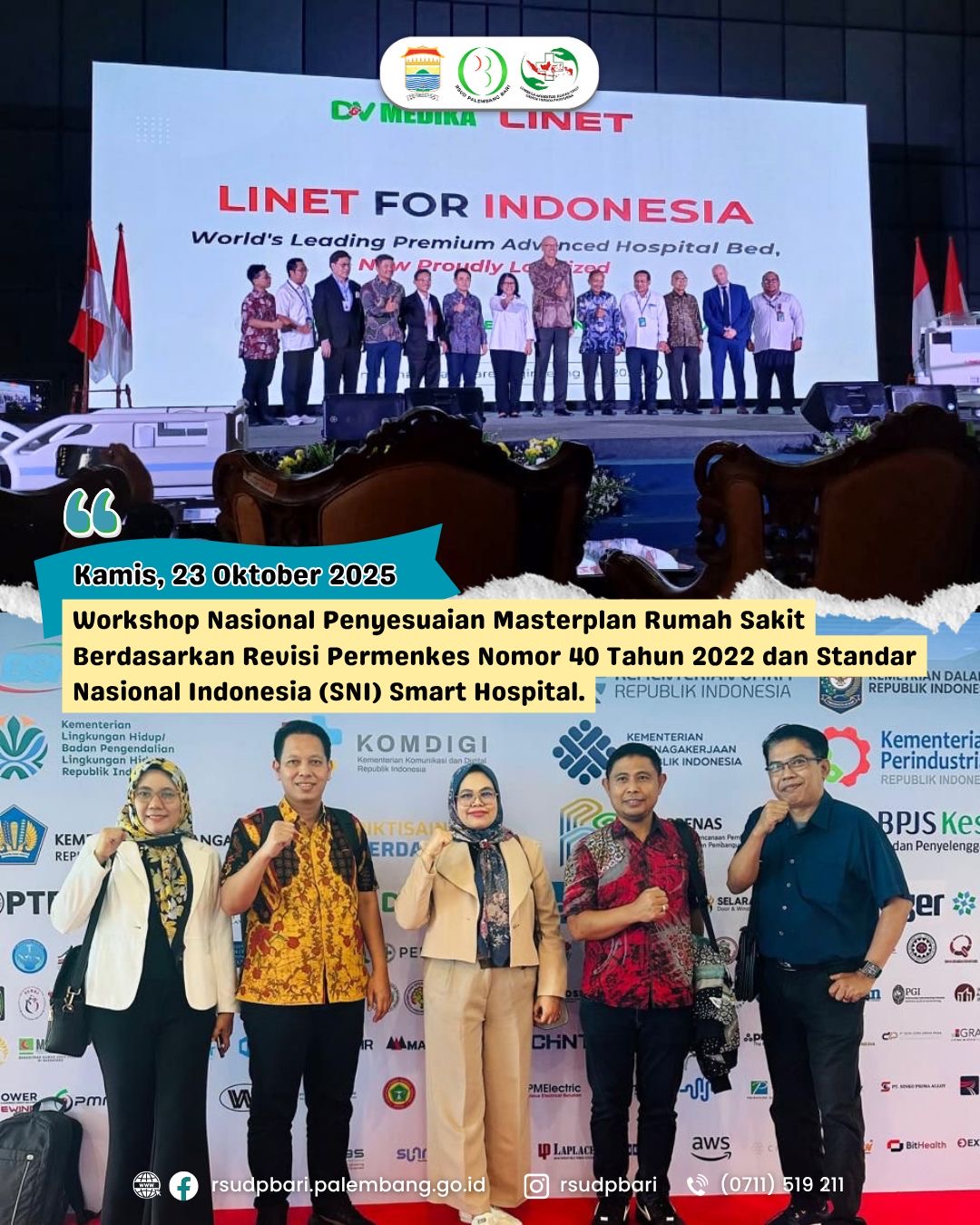 Kamis,23 oktober 2025] — Direktur RSUD Palembang Bari, dr.Amalia,M.Kes mewakili Wali Kota Palembang didampingi dalam acara Workshop Nasional Penyesuaian Masterplan Rumah Sakit Berdasarkan Revisi Permenkes Nomor 40 Tahun 2022 dan Standar Nasional Indonesia Smart Hospital yang diselenggarakan di [tempat smescoJakarta,